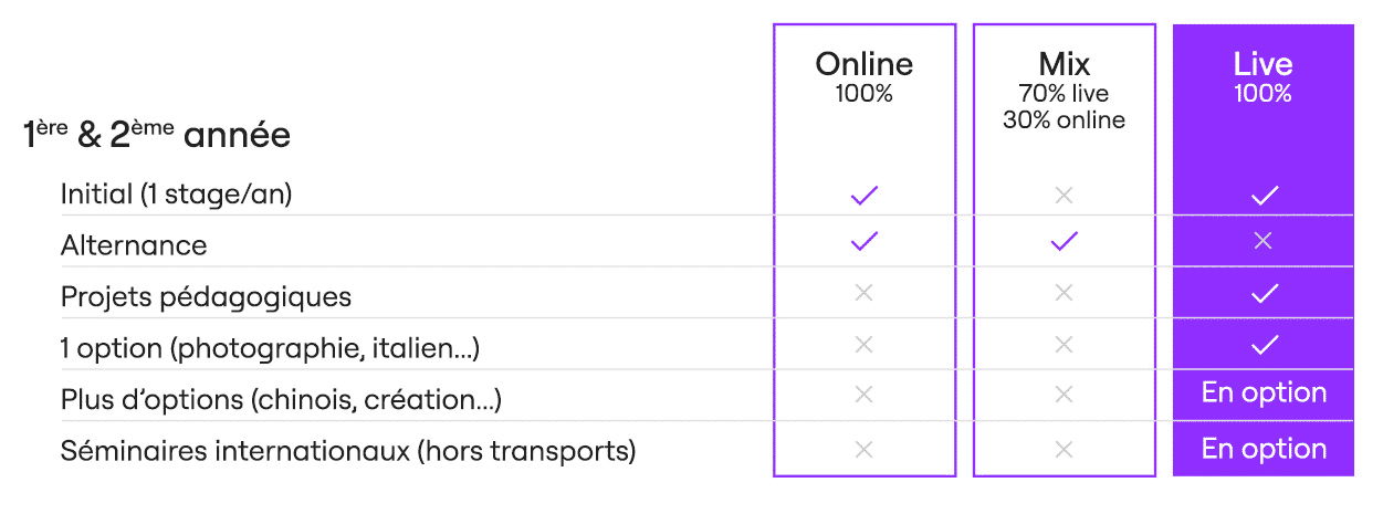 Les cours sont dispensés sur 4 jours par semaine